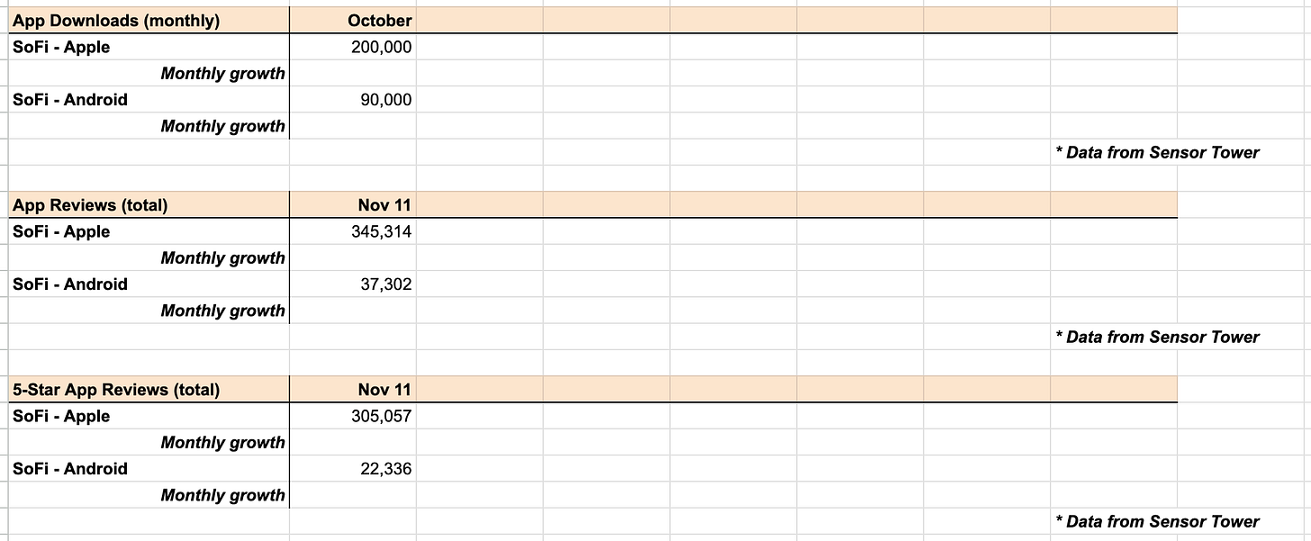 App Downloads: In October, SoFi's app was downloaded 200K times on Apple devices and 90K times on Android devices, according to Sensor Tower.
